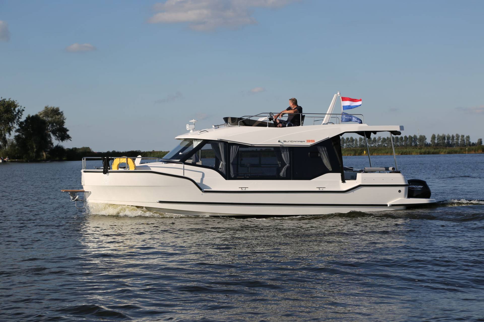 Für Ihren Komfort ist dieser SunCamper 35 außerdem standardmäßig mit einem Bugstrahlruder ausgestattet. Sie können aus 3 Motortypen wählen: Außenbordmotor, Innenborddiesel oder sogar einen Elektromotor. Als einzigartige Zusatzoption können Sie eine zweite Steuerkonsole auf dem Dach platzieren. Lassen Sie sich von dieser geräumigen, komfortablen Yacht überraschen!